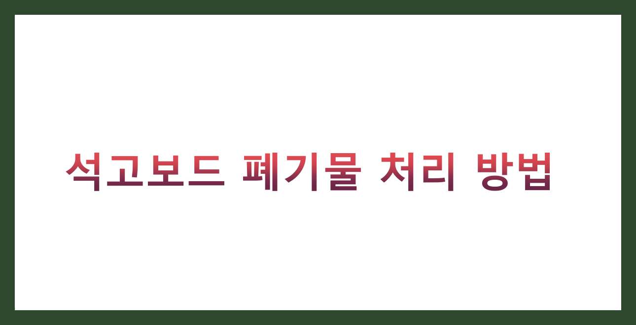 ⚠️ 주의사항: 석고보드를 일반 쓰레기와 함께 버리거나 불법 투기하면 최대 3년 이하의 징역이나 3천만원 이하의 벌금에 처해질 수 있습니다. 반드시 적법한 방법으로 처리하세요.