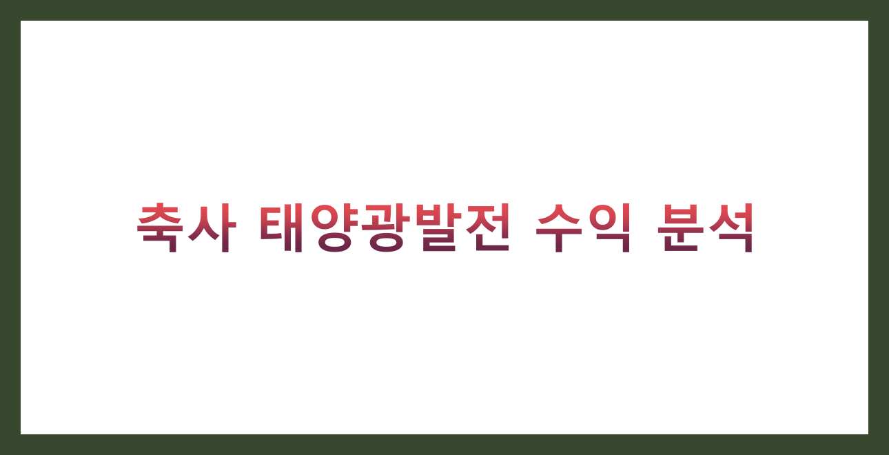 축사 태양광발전의 실제 수익 구조 분석